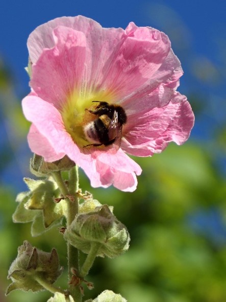 Einfache, ungefüllte Blüten bieten Insekten Nahrung durch Nektar und Pollen.